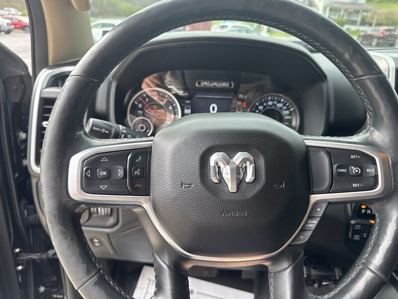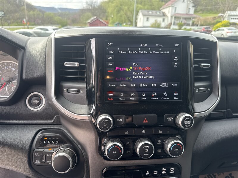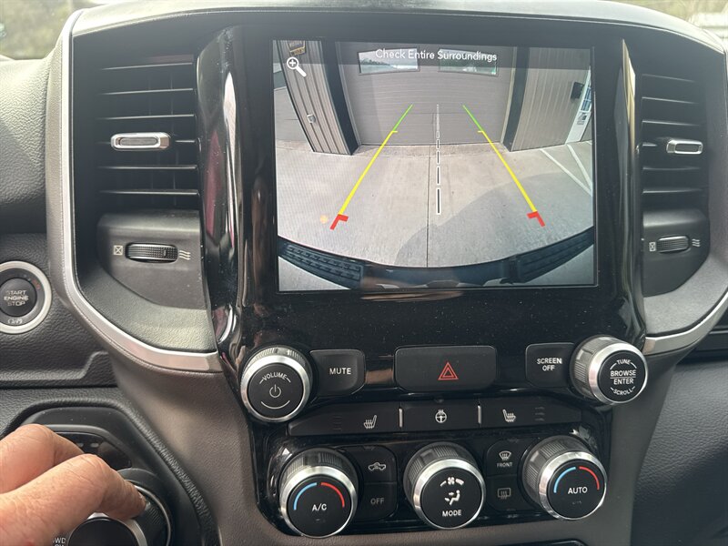 - Big Horn Level 2 Equipment GroupIncludes UConnect 4 with 8.4 inch touch screen display, Apple Carplay, Android Auto, AM/FM radio, single disc remote CD player, one year of SiriusXM Satellite Radio service, media hub with USB and auxiliary audio inputs, dual zone automatic climate control air-conditioning, remote start system, security alarm, universal garage door opener, 115V auxiliary front and rear power outlets, front heated seats, 8-way power adjustable driver seat with power lumbar, heated steering wheel, power adjustable pedals, rearview auto-dimming mirror, Big Horn IP badge, dual sun visors with illuminating vanity mirrors, glove box lamp, power sliding rear window with defroster, power folding heated exterior mirrors with supplemental signals and courtesy lamps, auto-dimming driver exterior mirror, dampened tailgate, Class IV receiver hitch, rear dome light with on/off switch, and ParkSense front and rear park assist system w/stop.